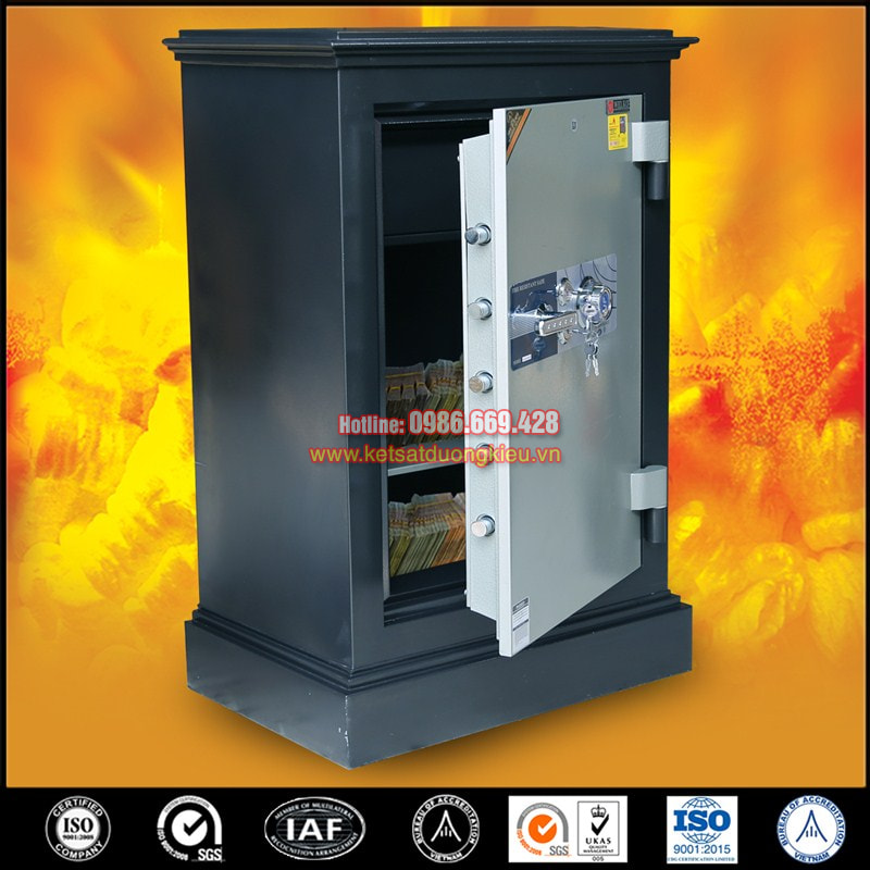 - Tính Năng: chống cháy 1200°C trong vòng 120 phút, khóa cơ an toàn bảo mật, 01 khóa chìa bi chống sao chép