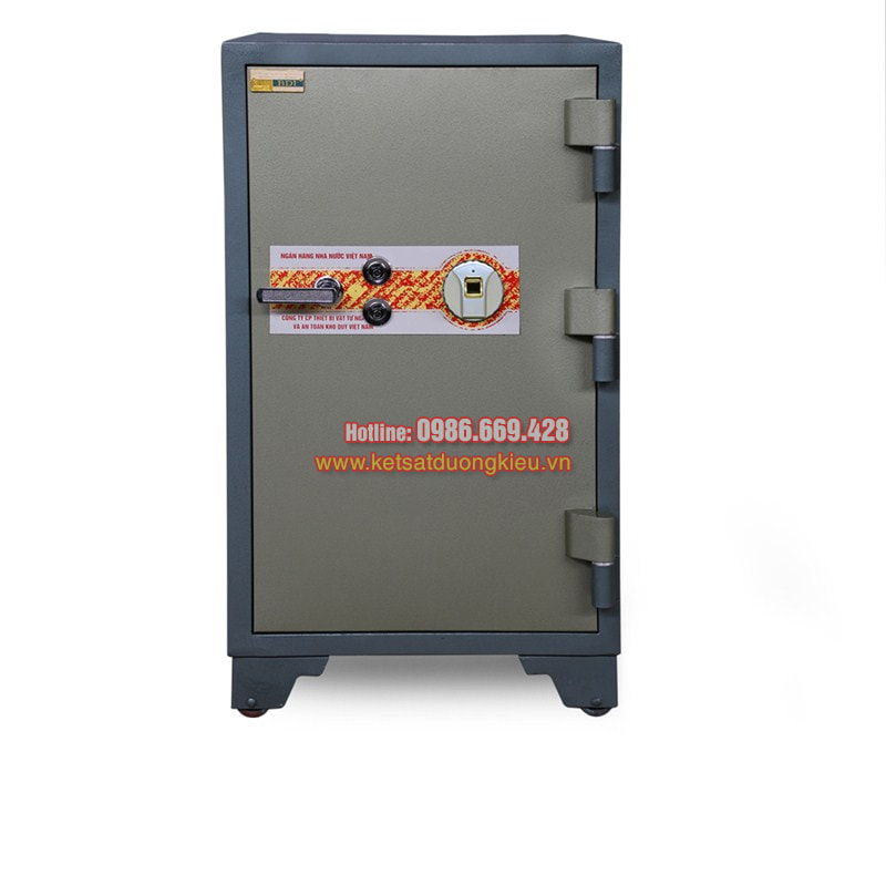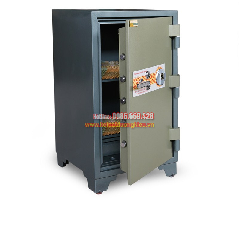 - An Toàn chống cháy Đặc Tính Kĩ Thuật: Két tiêu chuẩn ngân hàng, có kết cấu an toàn vững chắc. Lắp một khoá số, một chìa, một tay nắm ngoại Được phủ bởi 03 lớp sơn nhập ngoại kết hợp với công nghệ hiện đại đảm bảo sự bền màu theo thời gian