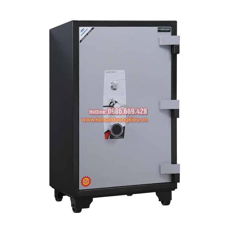 Chất Liệu : cánh cửa thép tấm dày 12mm chống khoan,chống cắt,chống đập ,thân két đúc dày 2 lớp an toàn cao.