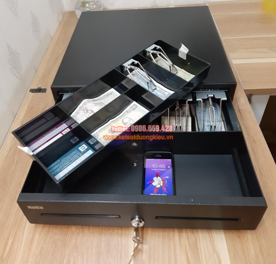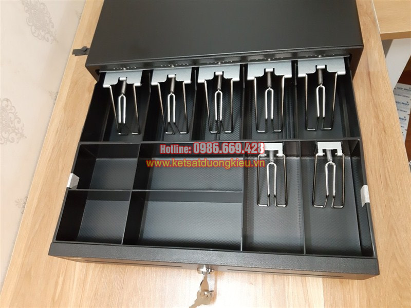 - Bên trong có 05 ngăn chia tiền chính + 06 ngăn phụ (có thể nhấc khay gồm 06 ngăn phụ này ra)