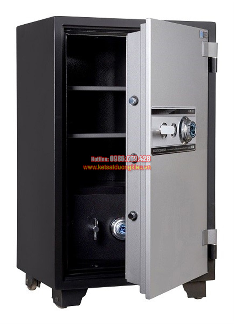 Phụ kiện đi kèm : 2 kệ bên trên(trong két) +1 két nhỏ bên dưới có khóa cơ+ 3 chìa khóa bên ngoài.